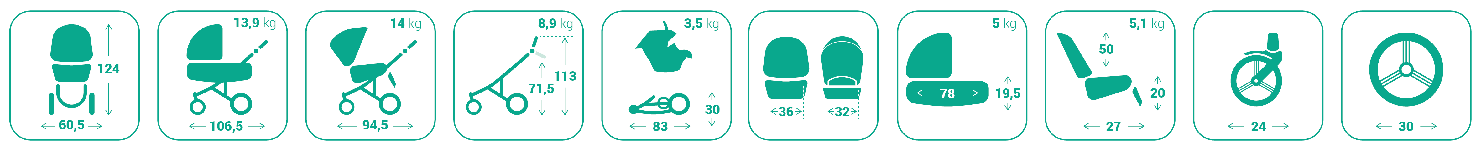 • Материал для обивки коляски изготавливается c технологией UV50+ для защиты от УФ-излучения
