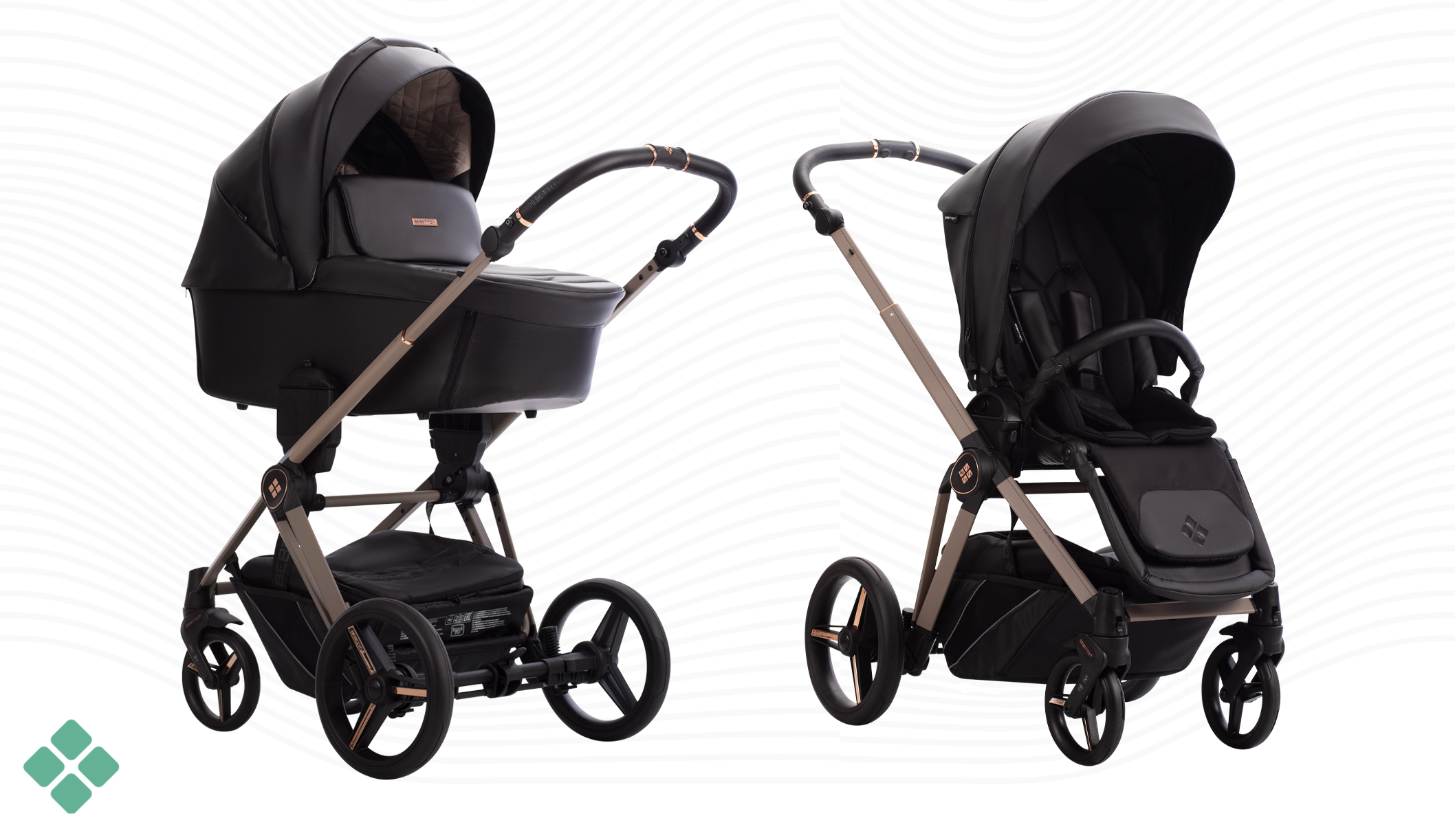 • Ручка, бампер и подножка прогулочного блока обита эко-кожей