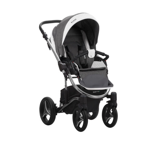 Для обивки TITO Premium Class Sati используется комбинация текстильных материалов уникальных фактур. Модель представлена в двух цветах: на белой люльке «под карбон» и на черной люльке «под карбон». Хромированное шасси и диски колес, люлька "под карбон" добавляют акценты на фактуру ткани и создают безукоризненный образ.