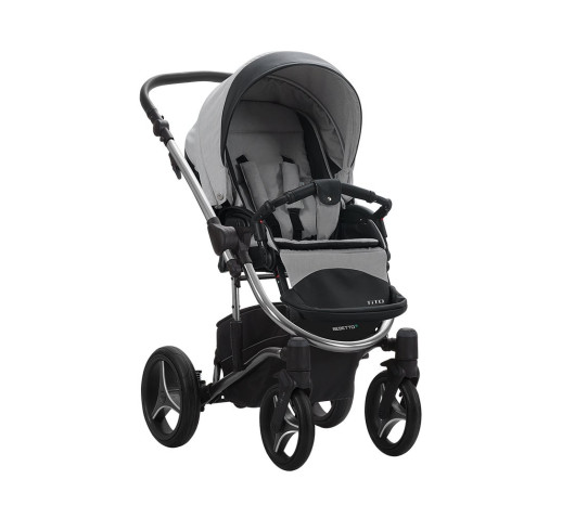 Для обивки TITO Premium Class Sati используется комбинация текстильных материалов уникальных фактур. Модель представлена в двух цветах: на белой люльке «под карбон» и на черной люльке «под карбон». Хромированное шасси и диски колес, люлька "под карбон" добавляют акценты на фактуру ткани и создают безукоризненный образ.