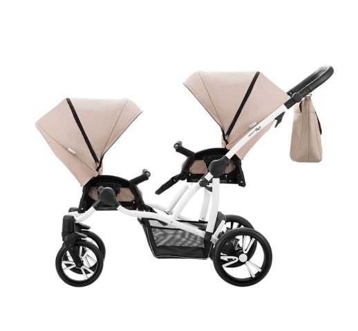 Унікальна перевага - легка і компактна рама авторської розробки Bebetto. Спеціальна система установки блоків на раму в різних комбінаціях (люлька + люлька, люлька + прогулянка / автокрісло, прогулянка + прогулянка / автокрісло) виключає громіздкість і забезпечує функціональність. Ви можете бути впевнені, що при будь-якій комплектації дітям буде просторо і затишно, а вам буде зручно управляти коляскою в усіх людних місцях і заїжджати в стандартні дверні отвори. У складеному ж вигляді рама чи більше звичайної.