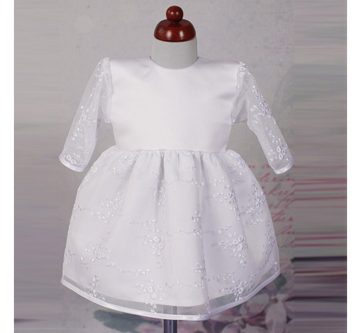 Святкову сукню з атласу, сатину і тюлевою тканини з вишивкою.