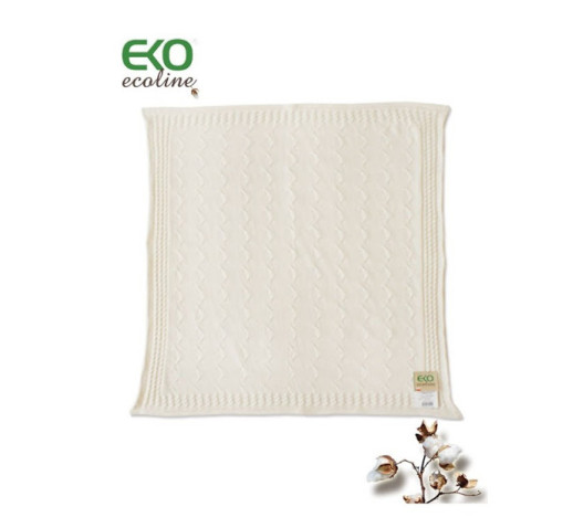 Легкий в'язаний плед із натуральної бавовняної пряжі. Приємний малюнок в'язання. Ідеально підійде щоб вкрити Вашого малюка під час сну в ліжечку або колясці.