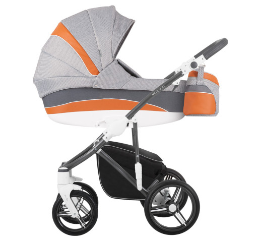 Універсальна коляска Murano від ТМ Bebetto за багато років стала однією з найпопулярніших моделей завдяки своїй високій функціональності і сучасного дизайну. Зараз перед вами - її оновлена версія. Особливий впізнаваний стиль Murano - це унікальна варіація кольорів з яскравими акцентами. Адже, Murano пропонує найширший вибір їх комбінації: контрастне забарвлення оббивки гармонійно перегукується з забарвленням рами і днища люльки (білий і під "графіт"). Нова коляска Murano має відмінні технічні характеристики: надійна конструкція рами стала легше майже на 1 кг, вдосконалена система амортизації, нова система складання рами, більш місткий кошик, високотехнологічні матеріали для обробки коляски і гіпоалергенний матрац в колисці з кокосового волокна.