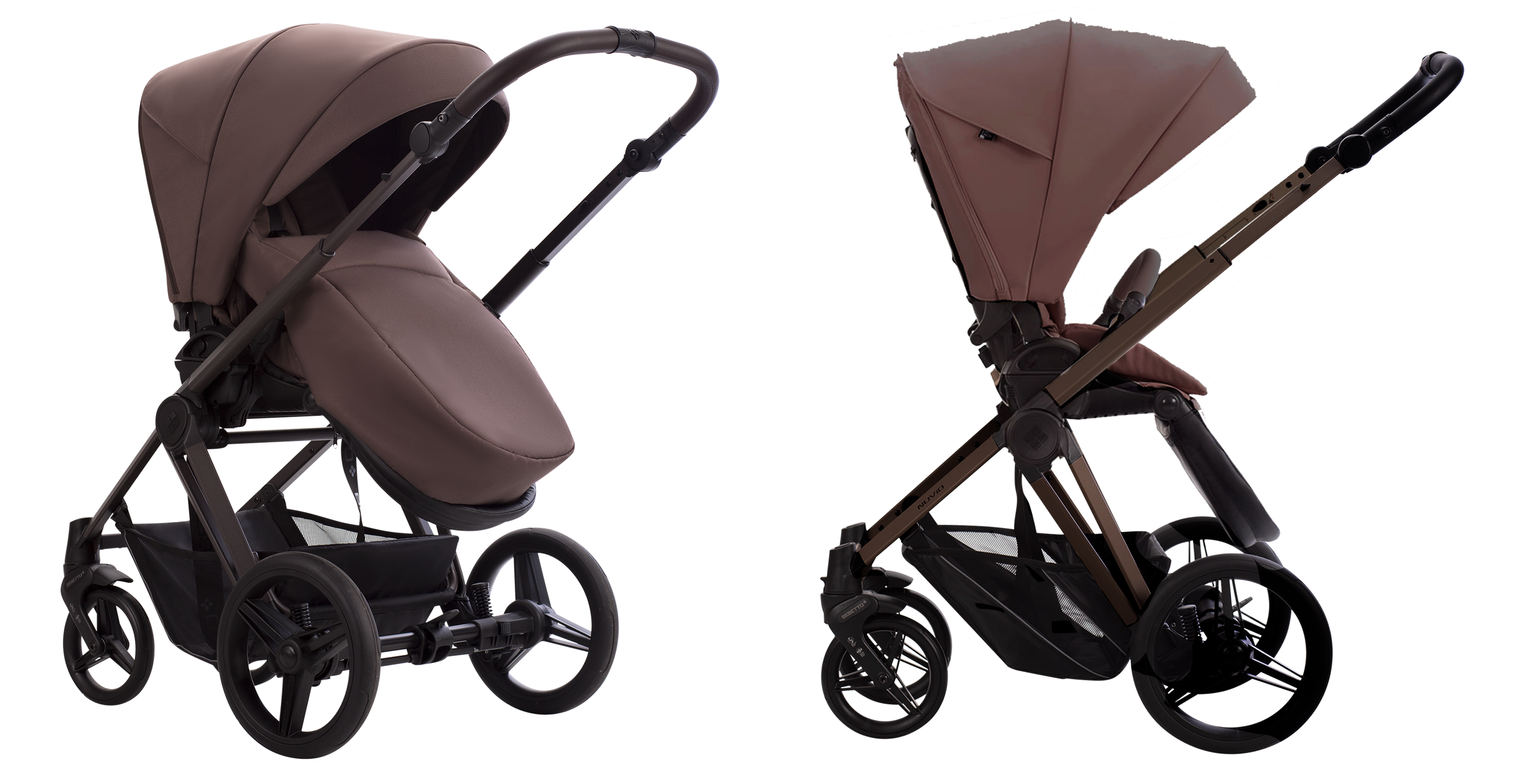 NUVIO побудована на новій унікальній рамі з покращеною амортизацією, що мінімізує вібрації та блокування коліс. Ідете Ви по бруківці, лісовій стежці чи нерівному тротуару, коляска завжди колиться плавно та стабільно.